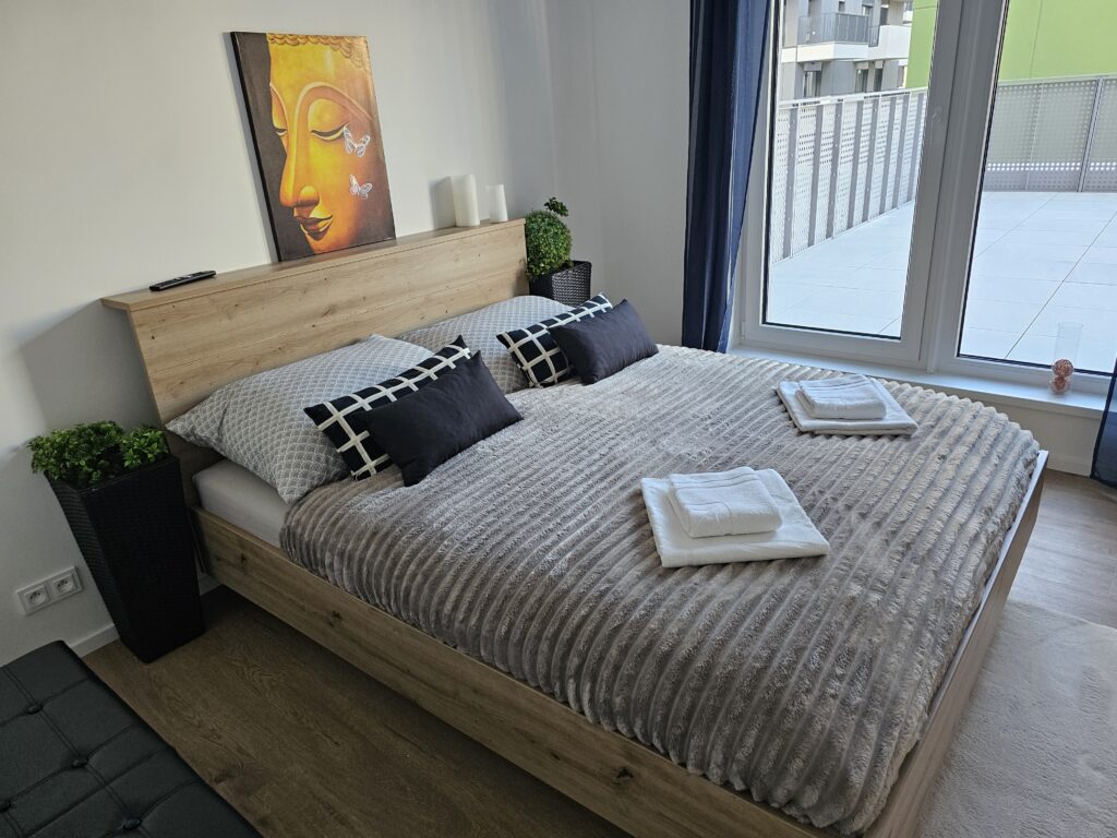 Cool palette and a calm vibe for a fresh city base. Modern space with reliable Wi Fi, comfy bed, and blackout curtains - perfect for business or leisure.